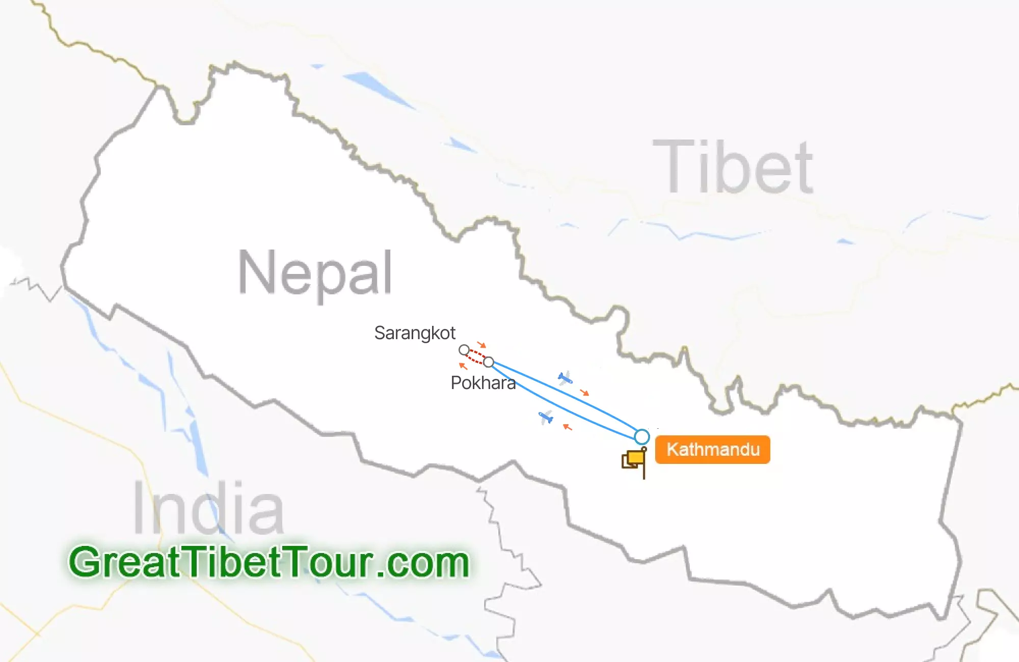 | Ruta: | Katmandú - Pokhara - Sarangkot - Katmandú |