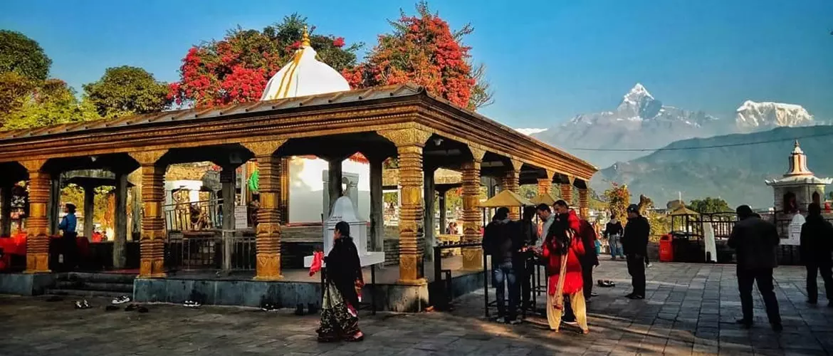 Después de regresar al hotel para desayunar, continúa tu recorrido turístico por Pokhara. Primero, visita las Cataratas Davis, una cascada única donde el agua se sumerge en un túnel subterráneo. Justo enfrente de las cataratas está la cueva Gupteshwor Mahadev, donde podrás observar el flujo subterráneo de la cascada. A continuación, dirígete al Cañón del Río Seti, la sección más impresionante del río Seti, ya que atraviesa profundamente la ciudad. Con acantilados que caen más de 100 metros, el cañón ofrece una vista dramática y memorable. Puedes apreciar su escala desde el Puente Mahendra. Más tarde, visita el Templo Bindhyabasini, uno de los templos más importantes de Pokhara, dedicado a la diosa Durga. Ubicado en el Bazar Viejo, también sirve como un lugar tranquilo para observar la vida local.